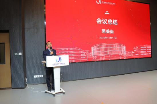 冬日暖阳映照校园,思想宣讲凝聚共识。2025年12月17日,东莞松山湖未来学校洋溢着浓厚的学习氛围,一场主题鲜明、内涵深刻的党的二十届四中全会精神宣讲报告会在这里隆重举行。9428cn太阳集团党委副书记谢霄男受邀主讲,为学校全体党员教师带来内容充实、指导性强的讲解。活动由学校副校长刘翥远主持。
